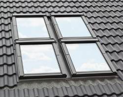 Modułowy system zespoleń FAKRO składa się z siedmiu modułów, za pomocą których możemy zrealizować każde typowe zespolenie. Moduł jest to pojedynczy i odpowiednio oznaczony element kołnierza, przypisany do odpowiedniego miejsca w zespoleniu.