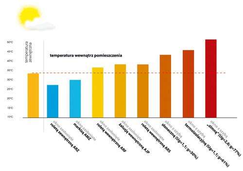 Przedstawione powyżej nasze wyniki badań jednoznacznie określają, że akcesoria zewnętrzne (roleta i markiza) najlepiej chronią przed uciążliwym upałem z zewnątrz. Optymalną osłoną przeciwsłoneczną jest markiza zewnętrzna, biorąc pod uwagę efekt ochrony cieplnej, cenę i łatwość montażu. Akcesoria wewnętrzne w ograniczonym stopniu chronią przed ciepłem, a ich głównym zadaniem jest dekoracja wnętrza oraz regulacja ilości światła wpadającego do pomieszczenia.