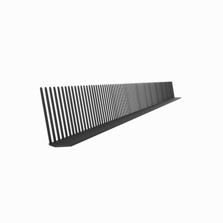Grzebień okapu. Zabezpiecza dach przed przedostaniem się do środka ptaków i gryzoni, jednocześnie zapewnia wlot powietrza do przestrzeni wentylacyjnej dachu. Dzięki elastycznemu PCV dokładnie dopasowuje się do krzywizny dachówek, unikając wyłamywania ząbków grzebienia.