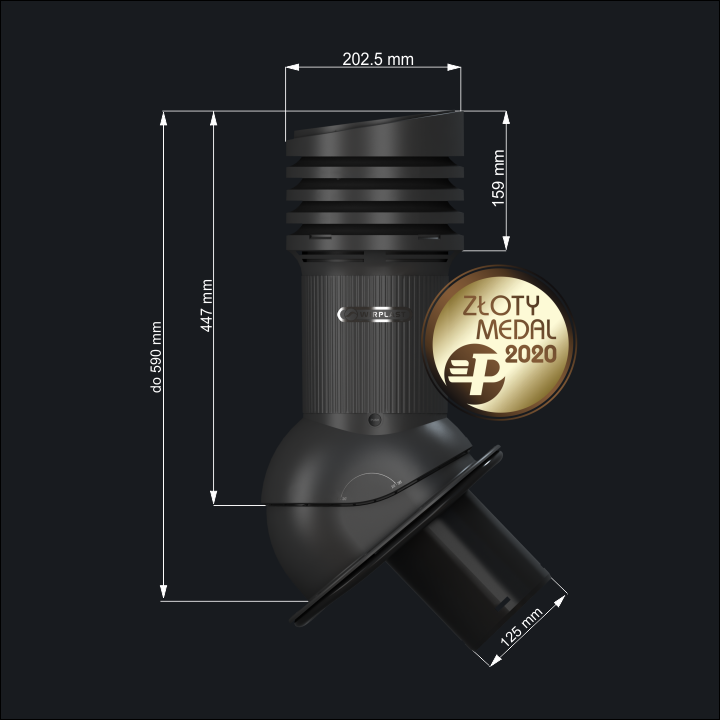 Kominek wentylacyjny z odpływem kondensatu PerfectaEVO do blach płaskich o średnicy 125 mm