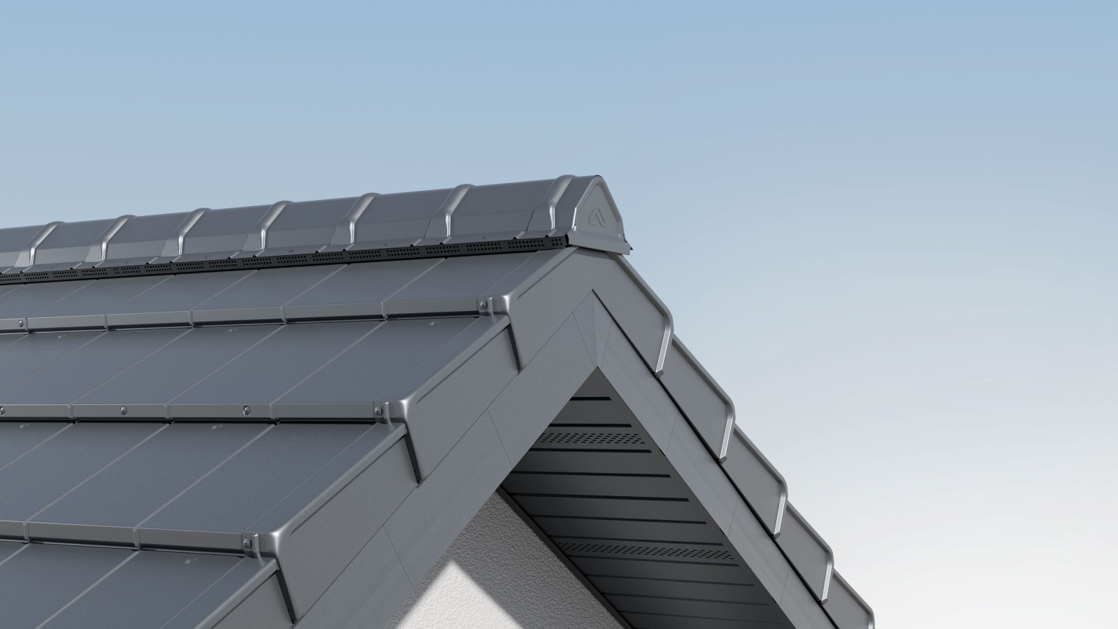 Pierwszy tego typu produkt na rynku wykonany z blachy, który pokonał ograniczenia technologii produkcji - stworzony jako jedna bryła, będąca dekoracyjnym wykończeniem bocznym blachodachówki modułowej.